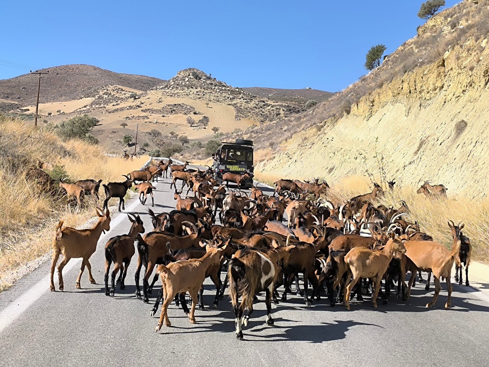 A special excursion to the South of the island—what else but the Trypiti beach-South Coast route. Including a visit to the famous lake of Zaros to connect with nature. A drive through the largest valley of Crete, Messara and its ancient ruins. An impressive Off-road through the huge vertical rocks of the gorge of Trypiti. A refreshing swim in the crystal-clear waters of the South Cretan Sea! And of course the authentic Cretan lunch in the wild olive tree forest! Discover the well-hidden exotic and calm beach of Trypiti and the magic of the South! We start our tour heading towards the South side of the island and passing through many traditional settlements. Τhis will be the beginning to experience the unknown beauty of the island. Feel the tribal peaceful way of life of the hospitable locals. Heading to our first stop we will tour around the mountain range of the highest mountain of Crete, Psiloritis. A place that is characterized as a GLOBAL GEOPARK by UNESCO ! Then we will arrive at the village of Zaros. We will have free time to explore the park around its picturesque lake Votomos. You can also take great photos or optionally enjoy a drink in one of the local cafes. We continue driving through the largest valley of Crete, surrounded by olive forests and ancient monuments from the pre-Minoan, Minoan, ancient Greek, and Roman eras. This is just before our descent into the gorge, navigating through huge vertical rocks that lead to the well-hidden and exotic beach of Trypiti. Enjoy a highly impressive route through the forest of wild olive trees and encounter the wild goats that inhabit the area. Landscape of incomparable natural beauty rich in flora and fauna with hundreds of wild herbs to collect.